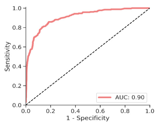The overall detection sensitivity in the machine learning model for all cancers was 57% (CI: 52, 64) at 95% specificity, and 43% (CI: 37, 49) at 99% specificity. The area under the curve (AUC) for this model was 0.90. A receiver operating characteristics (ROC) curve for the “all cancers” model is shown in Figure 1.