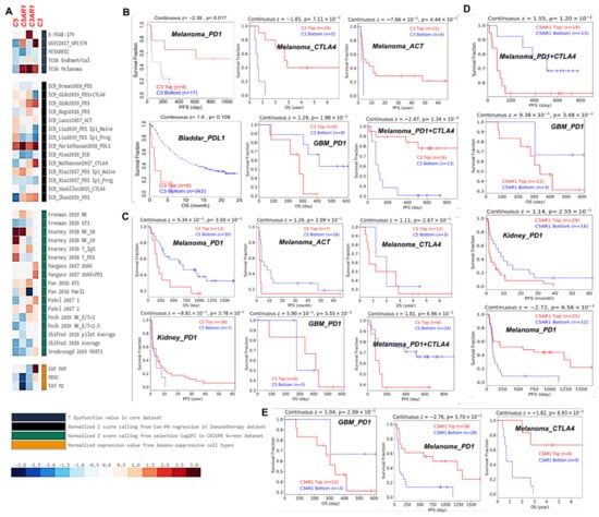 High C3 expression was associated with a good outcome of ICB therapy of PD1, CTLA4, and ACT in melanoma but was associated with worse PD and PDL1 outcomes in GBM and bladder cancer, respectively (Figure 6B). In contrast, high C5 expression was associated with a worse outcome of ICB therapy of PD1, CTLA4, and ACT in melanoma but predicted a good outcome of PD1 therapy in GBM and kidney cancer (Figure 6C). C5AR1 predicted a worse therapy outcome of PD1+CTLA4 in melanoma and of PD1 in GBM and kidney cancer (Figure 6D). Finally, C3AR1 was associated with a better therapy outcome of PDI and CTLA4 in melanoma and a worse outcome of PD1 therapy in GBM cancer (Figure 6E).