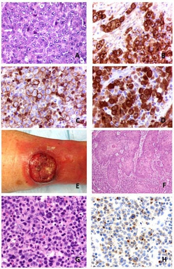 - Stein, H.; Mason, D.Y.; Gerdes, J.; O’Connor, N.; Wainscoat, J.; Pallesen, G.; Gatter, K.; Falini, B.; Delsol, G.; Lemke, H. The Expression of the Hodgkin’s Disease Associated Antigen Ki-1 in Reactive and Neoplastic Lymphoid Tissue: Evidence That Reed-Sternberg Cells and Histiocytic Malignancies Are Derived from Activated Lymphoid Cells. Blood 1985, 66, 848–858. [Google Scholar] [CrossRef] [PubMed]