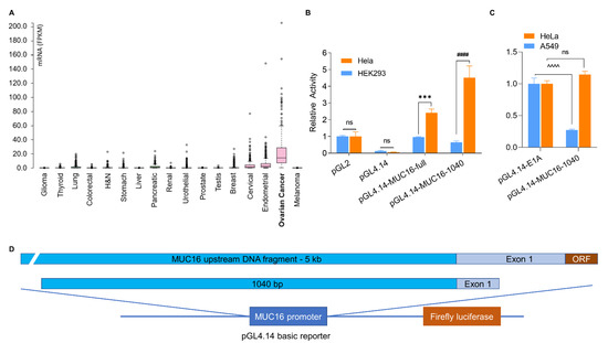 3.1. Identification of an Upstream Region of the MUC16 Gene with Specific Transcriptional Activity