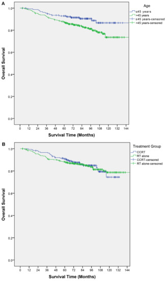 - Guo, Q.; Lu, T.; Lin, S.; Zong, J.; Chen, Z.; Cui, X.; Zhang, Y.; Pan, J. Long-term survival of nasopharyngeal carcinoma patients with Stage II in intensity-modulated radiation therapy era. Jpn. J. Clin. Oncol. 2016, 46, 241–247. [Google Scholar] [CrossRef] [Green Version]