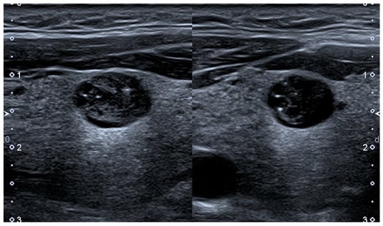 - Persichetti, A.; Di Stasio, E.; Coccaro, C.; Graziano, F.; Bianchini, A.; Di Donna, V.; Corsello, S.; Valle, D.; Bizzarri, G.; Frasoldati, A.; et al. Inter- and Intraobserver Agreement in the Assessment of Thyroid Nodule Ultrasound Features and Classification Systems: A Blinded Multicenter Study. Thyroid 2020, 30, 237–242. [Google Scholar] [CrossRef] [PubMed]
