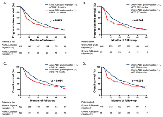 3.8. Progression-Free and Overall Survival Stratified by ALBI-Grade Migration