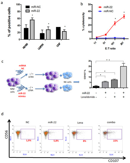 3.7. miR-22 Potentiates NK-Mediated Cytotoxicity Induced by Lenalidomide