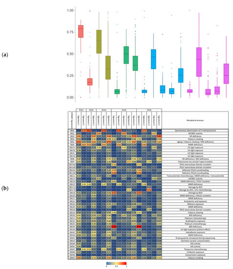 - Alexandrov, L.B.; Nik-Zainal, S.; Wedge, D.C.; Aparicio, S.A.; Behjati, S.; Biankin, A.V.; Bignell, G.R.; Bolli, N.; Borg, A.; Børresen-Dale, A.L.; et al. Signatures of mutational processes in human cancer. Nature 2013, 500, 415–421. [Google Scholar] [CrossRef] [PubMed] [Green Version]