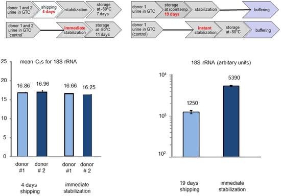 - Menke, T.B.; Warnecke, J.M. Improved Conditions for Isolation and Quantification of RNA in Urine Specimens. Ann. N. Y. Acad. Sci. 2004, 1022, 185–189. [Google Scholar] [CrossRef]