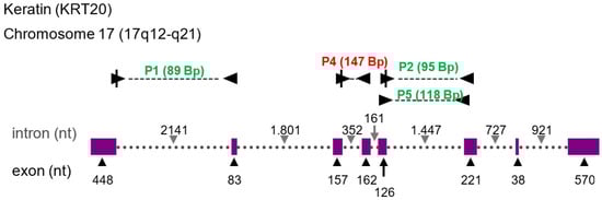 | KRT20 | AGCTGCGAAGTCAGATTAAGGA GAAGTCCTCAGCAGCCAGTT | 89 | pCRII-KRT20P1P1 |