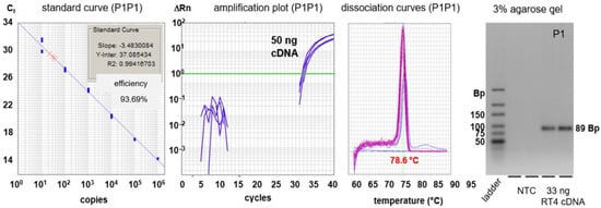 | Gene | Primer Sequences (5′–3′) Upper Line: Forward Lower Line: Reverse | Amplicon (bp) | Standard Plasmid |