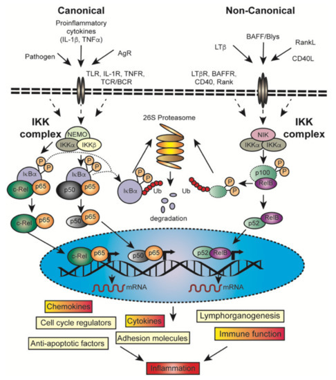 2.2. Downstream Signaling of Canonical and Non-Canonical NF-κB Activation