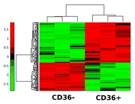 Finally, 106 and 72 differentially-secreted proteins from the CM of CD36+ and CD36− FBs, respectively, were included in the Vesiclepedia [], which indicates that a large proportion of proteins are transferred through exosomes or microvesicles.