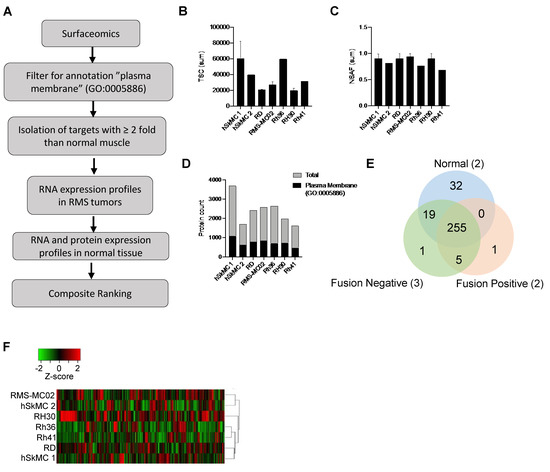 3.2. Validation of RMS-Enriched Cell Surface Proteins by Combined Proteomic and Transcriptomic Analysis