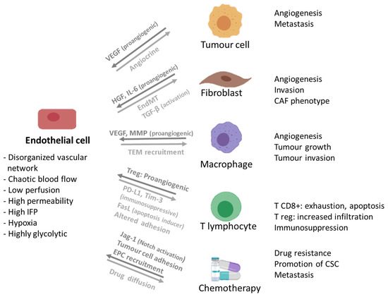 | Liver Breast | Human cell lines (HepG2, MCF-7 and MDA-MB-231) | HUVEC | Spheroids | EC formed tube-like structures in co-cultures with HepG2 but not with breast cancer cell lines; structures declined after 3 days of culture | [153] |