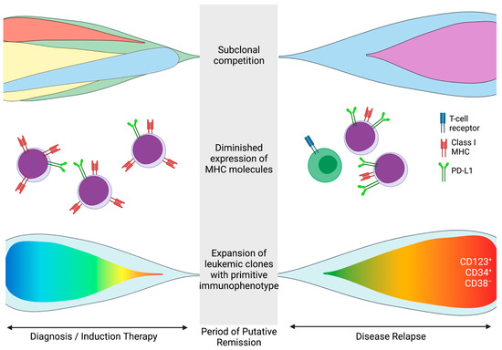 - Christopher, M.J.; Petti, A.A.; Rettig, M.; Miller, C.A.; Chendamarai, E.; Duncavage, E.J.; Klco, J.M.; Helton, N.M.; O’Laughlin, M.; Fronick, C.C.; et al. Immune Escape of Relapsed AML Cells after Allogeneic Transplantation. N. Engl. J. Med. 2018, 379, 2330–2341. [Google Scholar] [CrossRef] [PubMed]