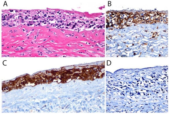 - Medeiros, L.J.; Marques-Piubelli, M.L.; Sangiorgio, V.F.I.; Ruiz-Cordero, R.; Vega, F.; Feldman, A.L.; Chapman, J.R.; Clemens, M.W.; Hunt, K.K.; Evans, M.G.; et al. Epstein-Barr-virus-positive large B-cell lymphoma associated with breast implants: An analysis of eight patients suggesting a possible pathogenetic relationship. Mod. Pathol. 2021. [Google Scholar] [CrossRef] [PubMed]