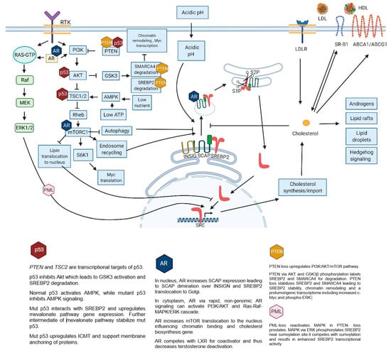 - Chen, Y.; Hughes-Fulford, M. Human prostate cancer cells lack feedback regulation of low-density lipoprotein receptor and its regulator, SREBP2. Int. J. Cancer 2001, 91, 41–45. [Google Scholar] [CrossRef]