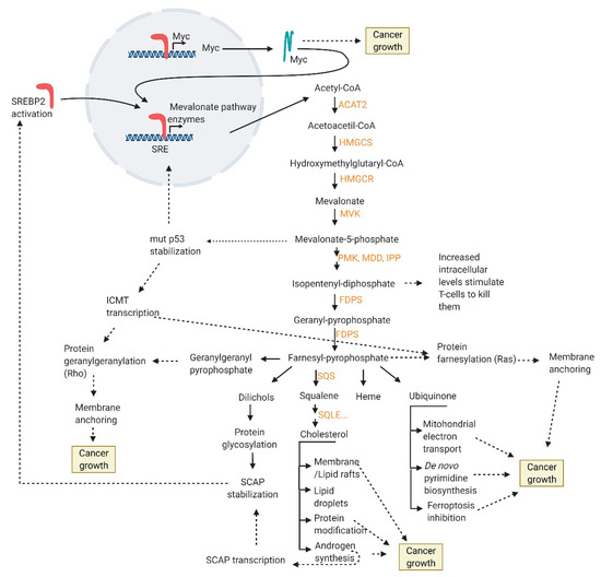 - Karlic, H.; Varga, F. Mevalonate Pathway. In Encyclopedia of Cancer, 3rd ed.; Boffetta, P., Hainaut, P.B.T., Eds.; Academic Press: Cambridge, MA, USA, 2019; pp. 445–457. Available online: http://www.sciencedirect.com/science/article/pii/B9780128012383650006 (accessed on 5 September 2021).