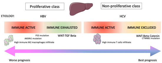 - Liu, Z.; Zhang, Y.; Shi, C.; Zhou, X.; Xu, K.; Jiao, D.; Sun, Z.; Han, X. A novel immune classification reveals distinct immune escape mechanism and genomic alterations: Implications for immunotherapy in hepatocellular carcinoma. J. Transl. Med. 2021, 19, 5. [Google Scholar] [CrossRef] [PubMed]