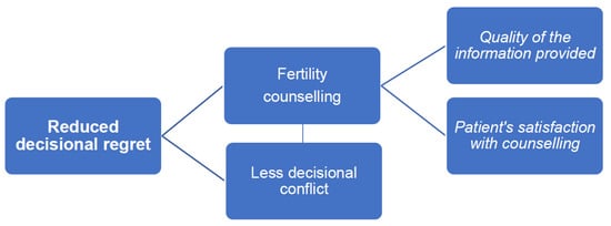 Fertility and fertility preservation are important issues to be considered during cancer management for patients at reproductive age. The possibility of undergoing fertility preservation procedures after potential infertility due to cancer treatments may offer women different rewards, such as, for example, the hope of bearing a child in the future that may represent, for some patients, a sense of normalcy and fulfilling life []. As documented by some studies addressing decisional regret, women who decided to preserve their fertility experienced less decisional regret with their fertility decisions. However, to reach an informed, high-quality fertility decision, it is crucial to provide tailored fertility counseling and support during such an uncertain and complex decision-making process.