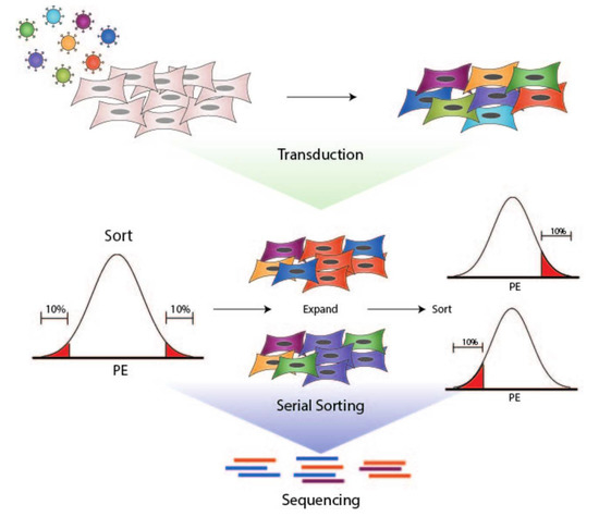 - Schuster, A.; Erasimus, H.; Fritah, S.; Nazarov, P.V.; van Dyck, E.; Niclou, S.P.; Golebiewska, A. RNAi/CRISPR Screens: From a Pool to a Valid Hit. Trends Biotechnol. 2019, 37, 38–55. [Google Scholar] [CrossRef]