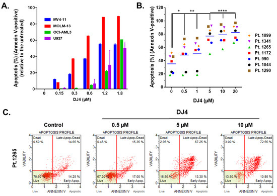 3.2. DJ4 Induces Apoptosis in AML Cell Lines and Primary Cells