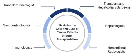 Many factors have contributed to help transplant oncology evolve from a concept toward an anticancer strategy, such as initiating studies in genomics and cancer immunogenomics based on new insights in liver cancer. In addition, the adoption of surgical transplantation techniques in oncology have improved conventional resection and bridged the gap between tumor and transplant immunology. The continuing collaboration between the relevant subspecialties, including transplant oncologists, hepatologists, gastroenterologists, transplant hepatobiliary surgeons, interventional radiologists, and immunologists, will improve treatments and cure rates for hepatobiliary and other cancer patients (Figure 1) [].