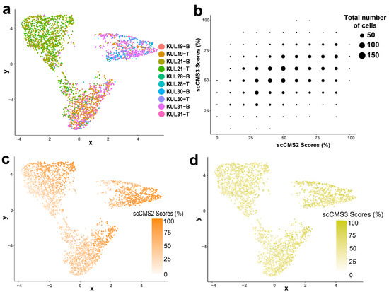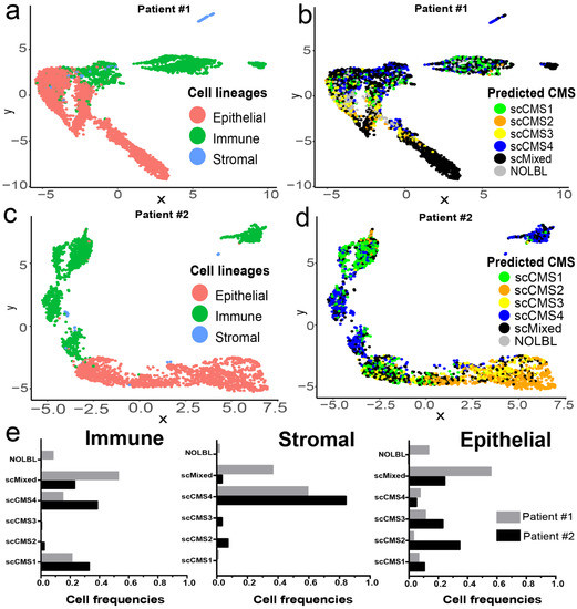 3.7. Frequency Distributions of Single Cells CMSs Do Not Correlate with CMS of Matched Bulk Tumor