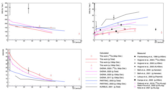 - Keta, O.; Petkovic, V.D.; Cirrone, P.; Petringa, G.; Cuttone, G.; Sakata, D.; Shin, W.G.; Incerti, S.; Petrovic, I.; Ristić Fira, A. DNA double-strand breaks in cancer cells as a function of proton linear energy transfer and its variation in time. Int. J. Radiat. Biol. 2021, 97, 1229–1240. [Google Scholar] [CrossRef]