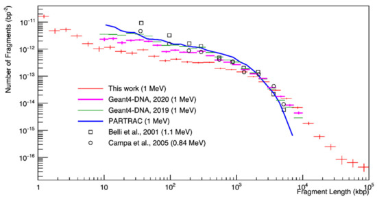 - Sakata, D.; Lampe, N.; Karamitros, M.; Kyriakou, I.; Belov, O.; Bernal, M.A.; Bolst, D.; Bordage, M.C.; Breton, V.; Brown, J.M.C.; et al. Evaluation of early radiation DNA damage in a fractal cell nucleus model using Geant4-DNA. Phys. Med. 2019, 62, 152–157. [Google Scholar] [CrossRef] [PubMed]