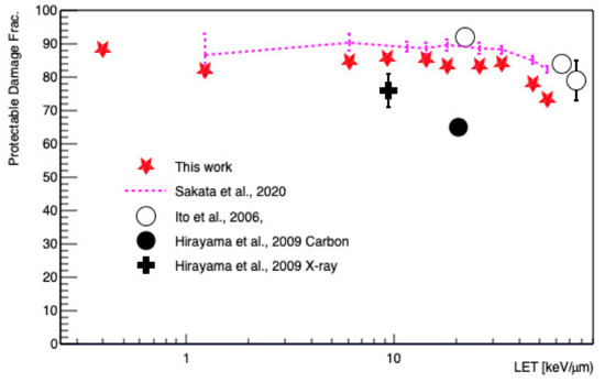 - Hirayama, R.; Ito, A.; Tomita, M.; Tsukada, T.; Yatagai, F.; Noguchi, M.; Matsumoto, Y.; Kase, Y.; Ando, K.; Okayasu, R.; et al. Contributions of direct and indirect actions in cell killing by high-LET radiations. Radiat. Res. 2009, 171, 212–218. [Google Scholar] [CrossRef]