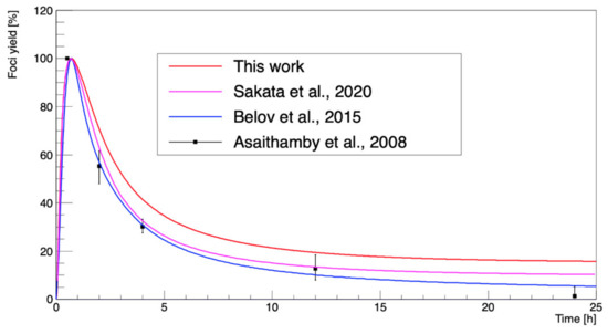 - Belov, O.V.; Krasavin, E.A.; Lyashko, M.S.; Batmunkh, M.; Sweilam, N.H. A quantitative model of the major pathways for radiation-induced DNA double-strand break repair. J. Theor. Biol. 2015, 366, 115–130. [Google Scholar] [CrossRef]