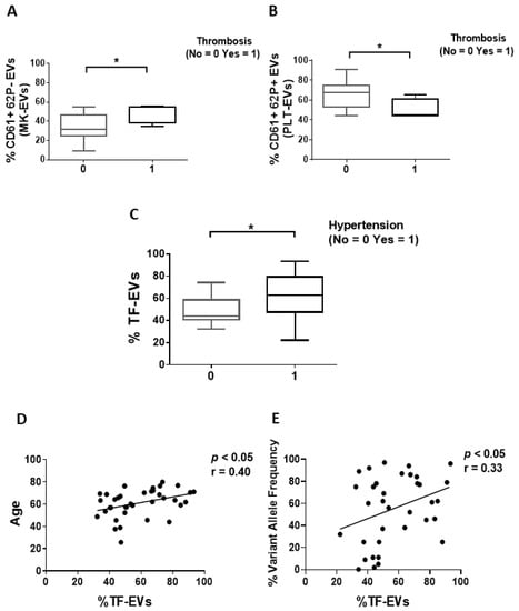 - Taniguchi, Y.; Tanaka, H.; Luis, E.J.; Sakai, K.; Kumode, T.; Sano, K.; Serizawa, K.; Rai, S.; Morita, Y.; Hanamoto, H.; et al. Elevated plasma levels of procoagulant microparticles are a novel risk factor for thrombosis in patients with myeloproliferative neoplasms. Int. J. Hematol. 2017, 106, 691–703. [Google Scholar] [CrossRef] [PubMed]