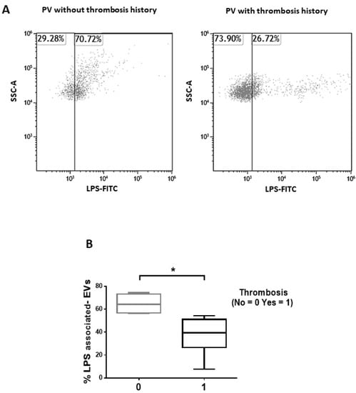 3.2. Isolated EVs of PV Patients Show a LPS-Associated Signature of Thrombosis
