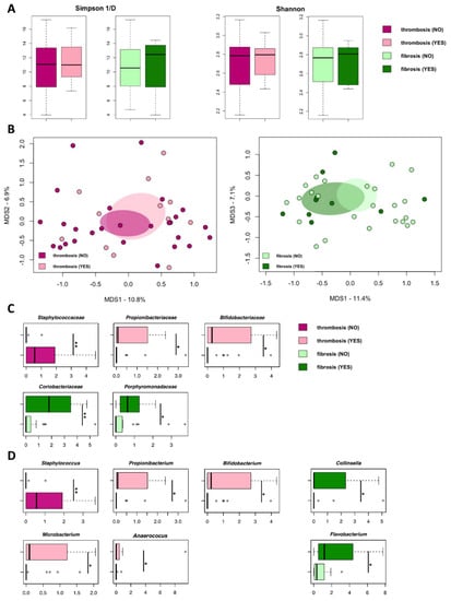3.4. The Gut Microbiome Does Not Differ between PV Patients with or without Thrombosis History or Marrow Fibrosis