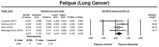 Meta-analysis for the effect estimate of exercise training in lung cancer patients: Fatigue symptoms.