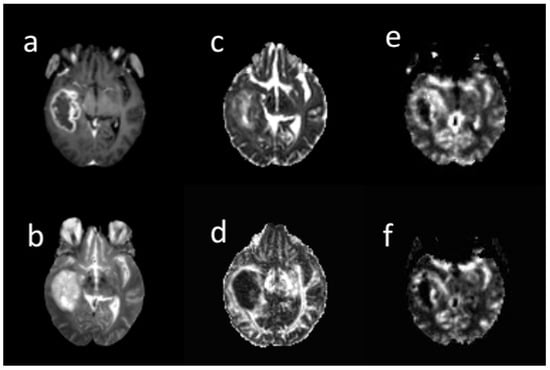 - Beppu, T.; Inoue, T.; Shibata, Y.; Kurose, A.; Arai, H.; Ogasawara, K.; Ogawa, A.; Nakamura, S.; Kabasawa, H. Measurement of fractional anisotropy using diffusion tensor MRI in supratentorialastrocytic tumors. J. Neuro-Oncol. 2003, 63, 109–116. [Google Scholar] [CrossRef]
