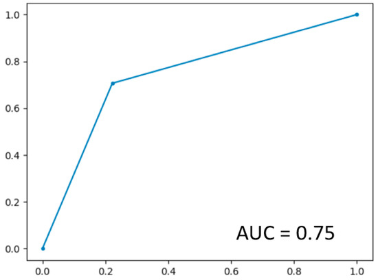 In LOOCV, the GBoost classifier outputs a decision value to predict the survival time class for each single patient, the receiver operating curve (ROC) was delineated for testing datasets generated by the LOOCV (Figure 3). To illustrate the diagnostic performance of the predictive model, the area under the curve (AUC) was calculated (Figure 4, Table 4). A GBoost trained model using best selected features by RF-RFE method was able to classify patient survival with 75% accuracy. Classification of survival time with all features without RF-RFE achieved 58% accuracy (Table 4).