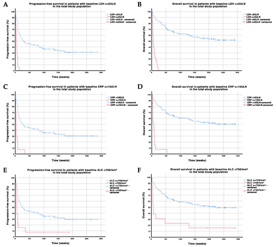 | LDH (≥ULN vs. <ULN) | 8.815 (0.003) | NS | 11.452 (0.001) | NS |