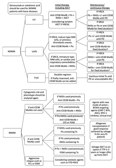 Chicago/Turabian StyleSuzuki, Kazuhito, Kaichi Nishiwaki, and Shingo Yano. 2021. "Treatment Strategies Considering Micro-Environment and Clonal Evolution in Multiple Myeloma" Cancers 13, no. 2: 215. https://doi.org/10.3390/cancers13020215