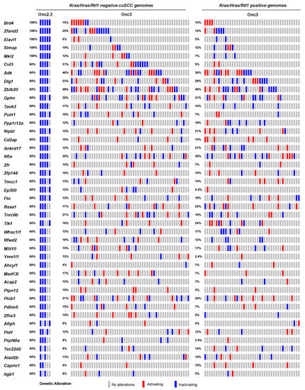 - Mann, M.B.; Aiderus, A.; Newberg, J.Y.; Guzman-Rojas, L.; Contreras-Sandoval, A.M.; Meshey, A.L.; Jones, D.J.; Amaya-Manzanares, F.; Rangel, R.; Ward, J.M.; et al. Supplementary Tables 1–43 for Transposon mutagenesis identifies cooperating genetic drivers during keratinocyte transformation and cutaneous squamous cell carcinoma progression. Figshare 2020. Available online: https://dx.doi.org/10.35092/yhjc.11441130 (accessed on 30 September 2020).