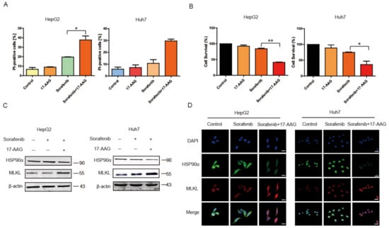 2.5. 17-AAG Combining with Sorafenib Enhanced Necroptosis Pathway In Vitro