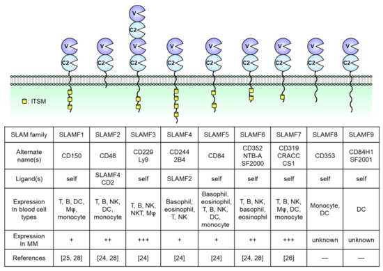 - Wu, N.; Veillette, A. SLAM family receptors in normal immunity and immune pathologies. Curr. Opin. Immunol. 2016, 38, 45–51. [Google Scholar] [CrossRef] [PubMed]