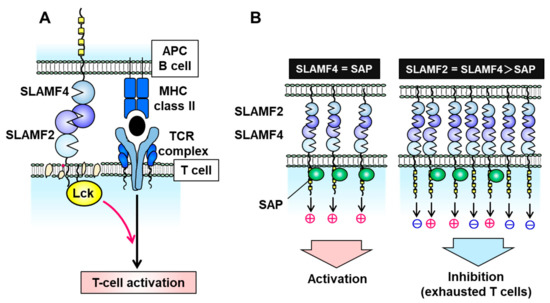 - Schwartzberg, P.L.; Mueller, K.L.; Qi, H.; Cannons, J.L. SLAM receptors and SAP influence lymphocyte interactions, development and function. Nat. Rev. Immunol. 2009, 9, 39–46. [Google Scholar] [CrossRef]
