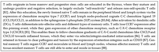Explanation about T cell development and trafficking [82,83,84,85,86,87,88].