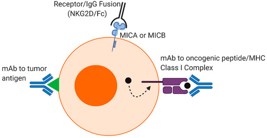 In summary, therapeutic mAbs are one of the largest classes of modern biopharmaceuticals and continue to grow each year [112,113,114]. In addition to recognizing cell surface tumor antigens, mAbs can be used to recognize intracellular tumor antigens such as oncogenic peptide/MHC class I complexes [115]. Tumor-associated markers can also be detected by receptor–IgG chimeric proteins, such as NKG2D-IgG that binds MICA and MICB, ligands that are upregulated in various malignancies [116]. These products provide an ever-increasing repertoire of tumor-associated and tumor-specific targeting elements (Figure 2). Recent approaches have attempted to address mechanisms of resistance to mAb therapy by modification of the Fab and Fc regions. For the latter, this has involved various types of Fc engineering to change glycosylation and amino acid residues to enhance ADCC. An alternative approach to the optimization of individual mAbs is the engineering of NK cells with enhanced FcγRs.