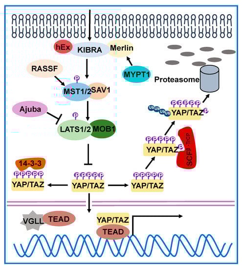 114. Yin, F.; Yu, J.; Zheng, Y.; Chen, Q.; Zhang, N.; Pan, D. Spatial organization of Hippo signaling at the plasma membrane mediated by the tumor suppressor Merlin/NF2. Cell 2013, 154, 1342–1355. [Google Scholar] [CrossRef] [PubMed]