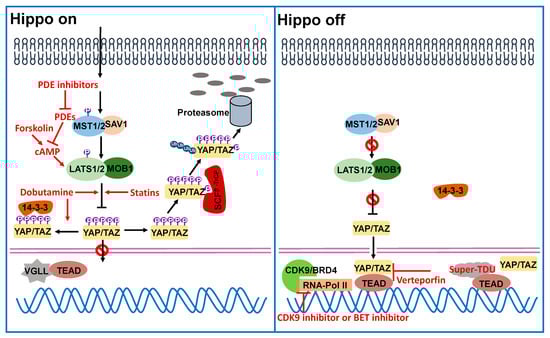 153. Yu, F.X.; Zhang, Y.; Park, H.W.; Jewell, J.L.; Chen, Q.; Deng, Y.; Pan, D.; Taylor, S.S.; Lai, Z.C.; Guan, K.L. Protein kinase A activates the Hippo pathway to modulate cell proliferation and differentiation. Genes Dev. 2013, 27, 1223–1232. [Google Scholar] [CrossRef] [PubMed]