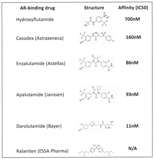 - Crawford, E.D.; Schellhammer, P.F.; McLeod, D.G.; Moul, J.W.; Higano, C.S.; Shore, N.; Denis, L.; Iversen, P.; Eisenberger, M.A.; Labrie, F. Androgen Receptor Targeted Treatments of Prostate Cancer: 35 Years of Progress with Antiandrogens. J. Urol. 2018, 200, 956–966. [Google Scholar] [CrossRef]