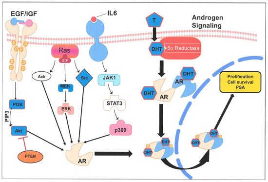- Zhu, M.-L.; Kyprianou, N. Androgen receptor and growth factor signaling cross-talk in prostate cancer cells. Endocr. Relat. Cancer 2008, 15, 841–849. [Google Scholar] [CrossRef] [PubMed]