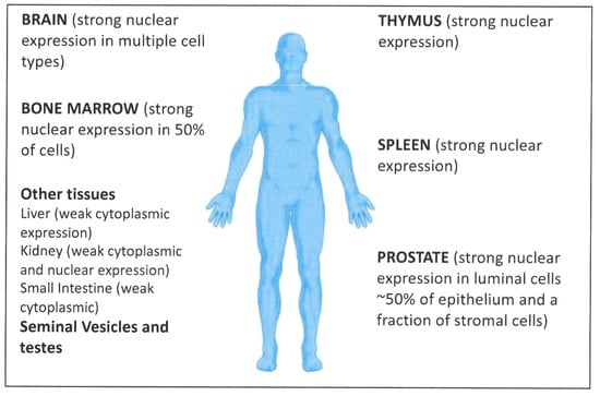 - Rivera-Gonzalez, G.C.; Droop, A.P.; Rippon, H.J.; Tiemann, K.; Pellacani, D.; Georgopoulos, L.J.; Maitland, N.J. Retinoic acid and androgen receptors combine to achieve tissue specific control of human prostatic transglutaminase expression: A novel regulatory network with broader significance. Nucleic Acids Res. 2012, 40, 4825–4840. [Google Scholar] [CrossRef] [PubMed]