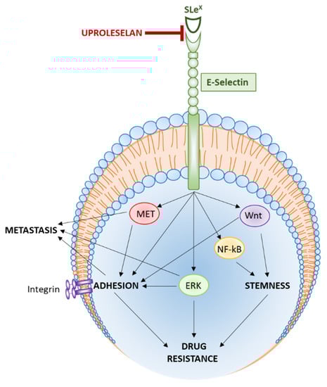There is growing evidence showing that E-selectin is involved in several aspects of cancer pathophysiology: